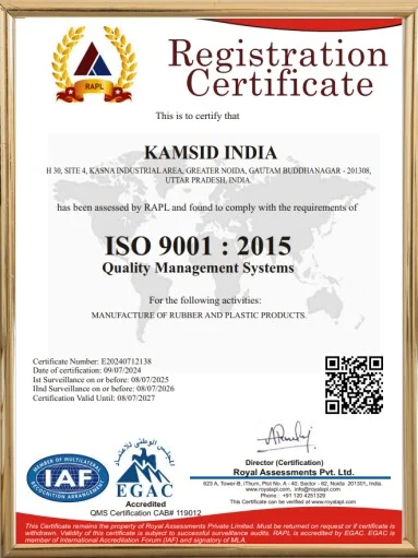 To ensure we meet the highest standards in our production processes, Kamsid India has implemented the ISO 9001:2015 Quality Management System. This internationally recognized standard provides a framework for consistent quality and continuous improvement across all aspects of our operations.